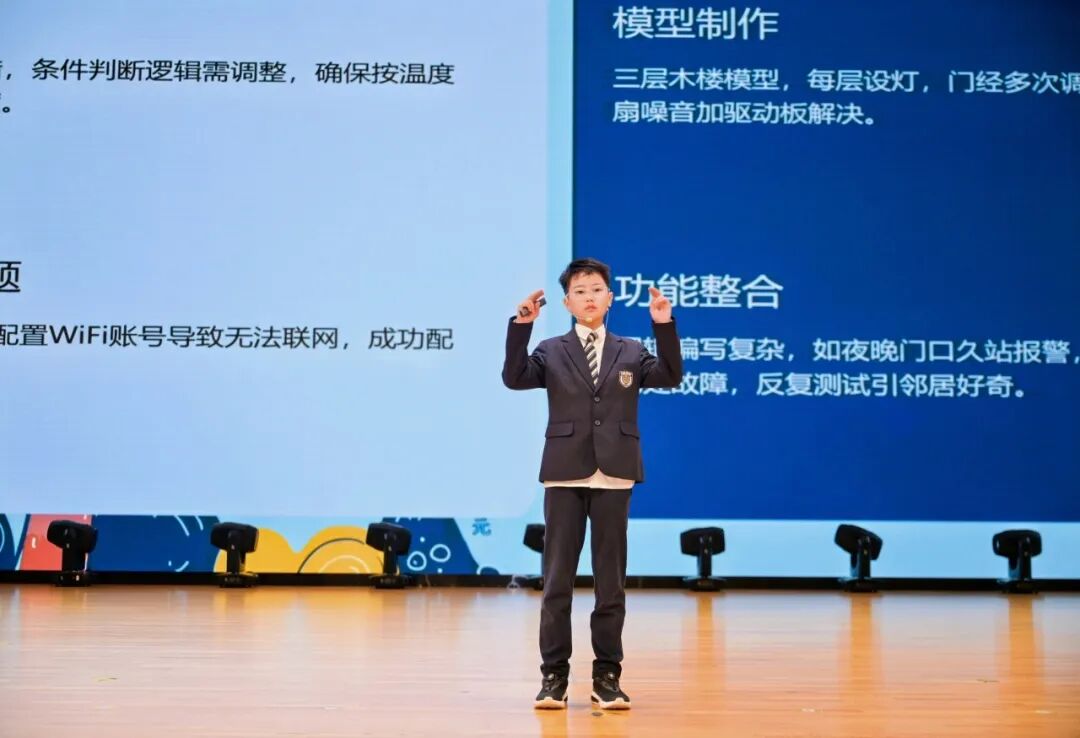 小学部的陈诺绅,因为一次被热醒后摸黑关灯的经历,花了一整个暑假,从零开始搭建了一套“多传感器交互式智能家居”。他用自己的故事证明,科技最动人的力量,恰恰在于解决那些“烦人的小事”。